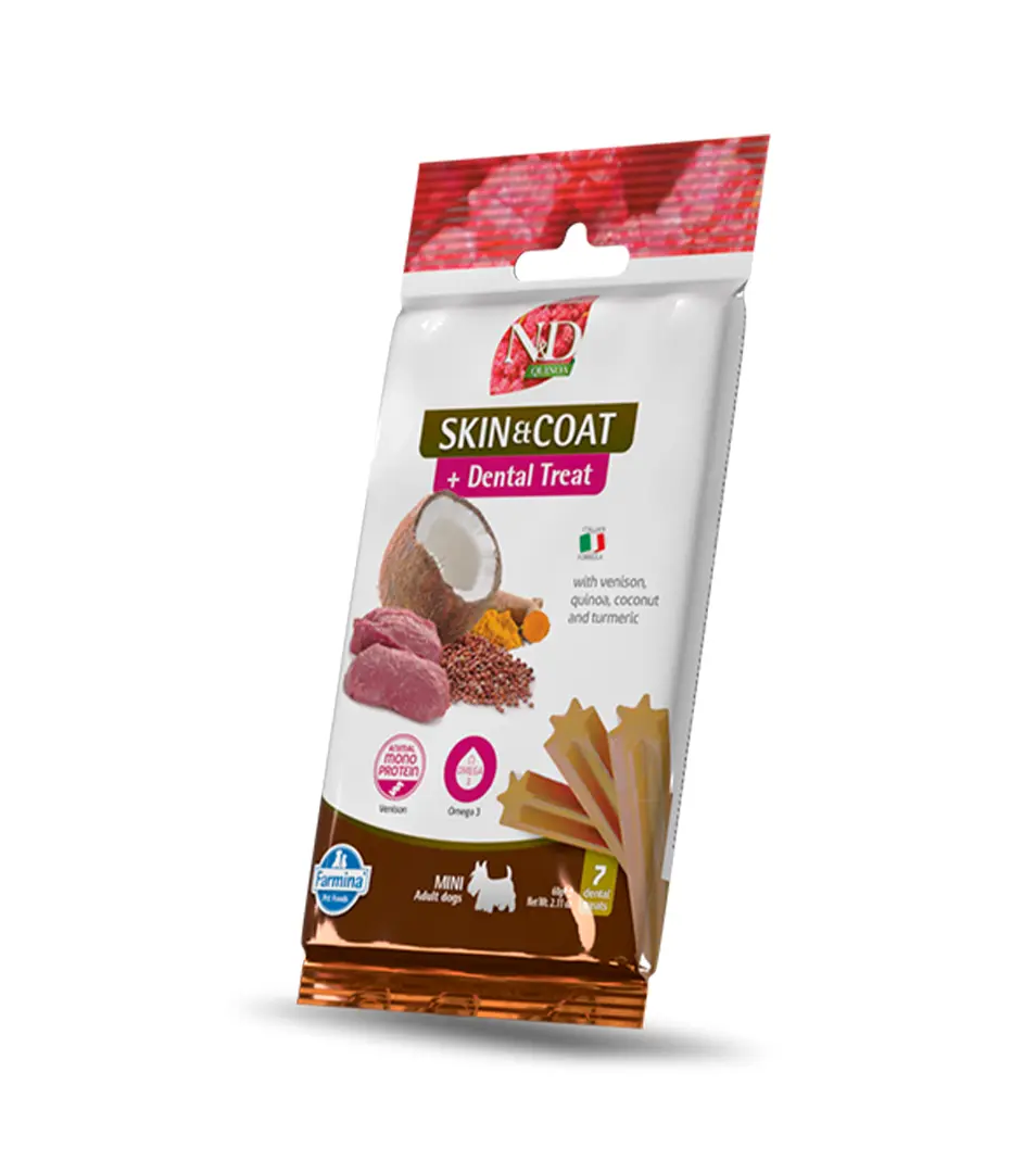Pamlsok Farmina N&D Quinoa Dog Skin Coat Venison Adult Mini 60g