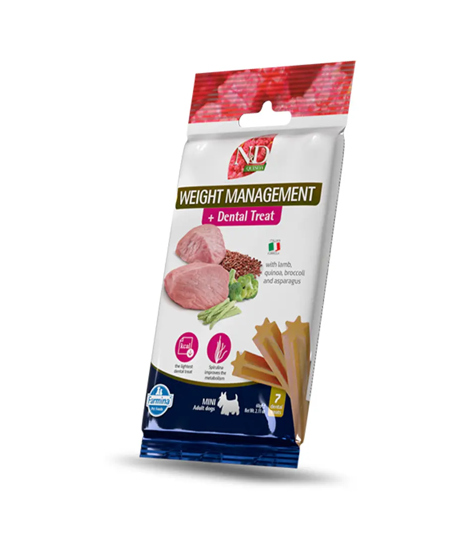 Pamlsok Farmina N&D Quinoa Dog Weight Man Lamb Adult Mini 60gSkladom3,48 €/ KS2,83 € bez DPH