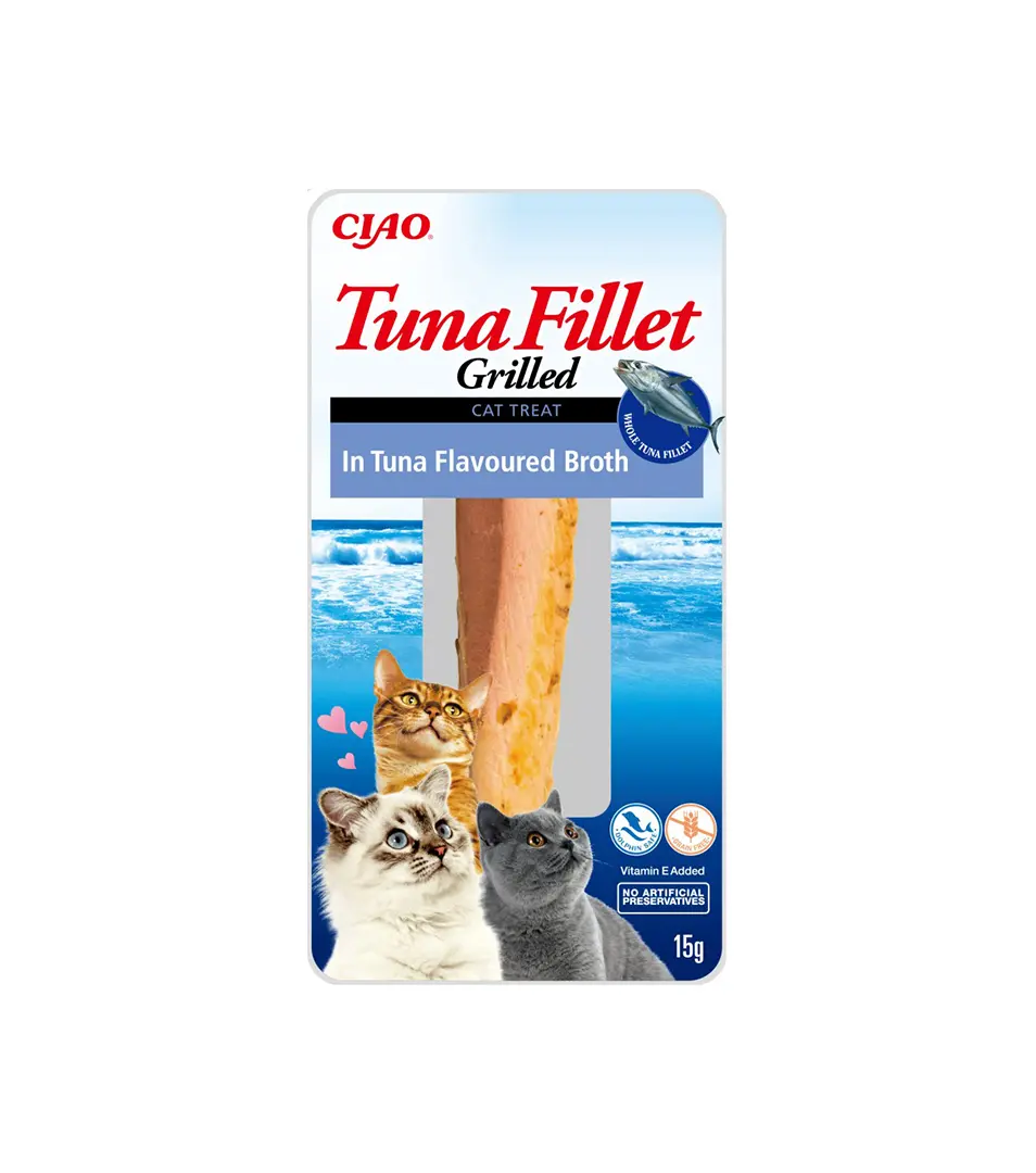 Churu Grilled pamlsky sú šťavné filé z tuniaka bohaté na proteíny, ručme rezané, ľahko grilované a zabalené v lahodnom vývare z morských plodov. Majú nízky obsah kalórií, sú bez obilovín, konzervantov, umelých farbív, s vysokým obsahom vody.