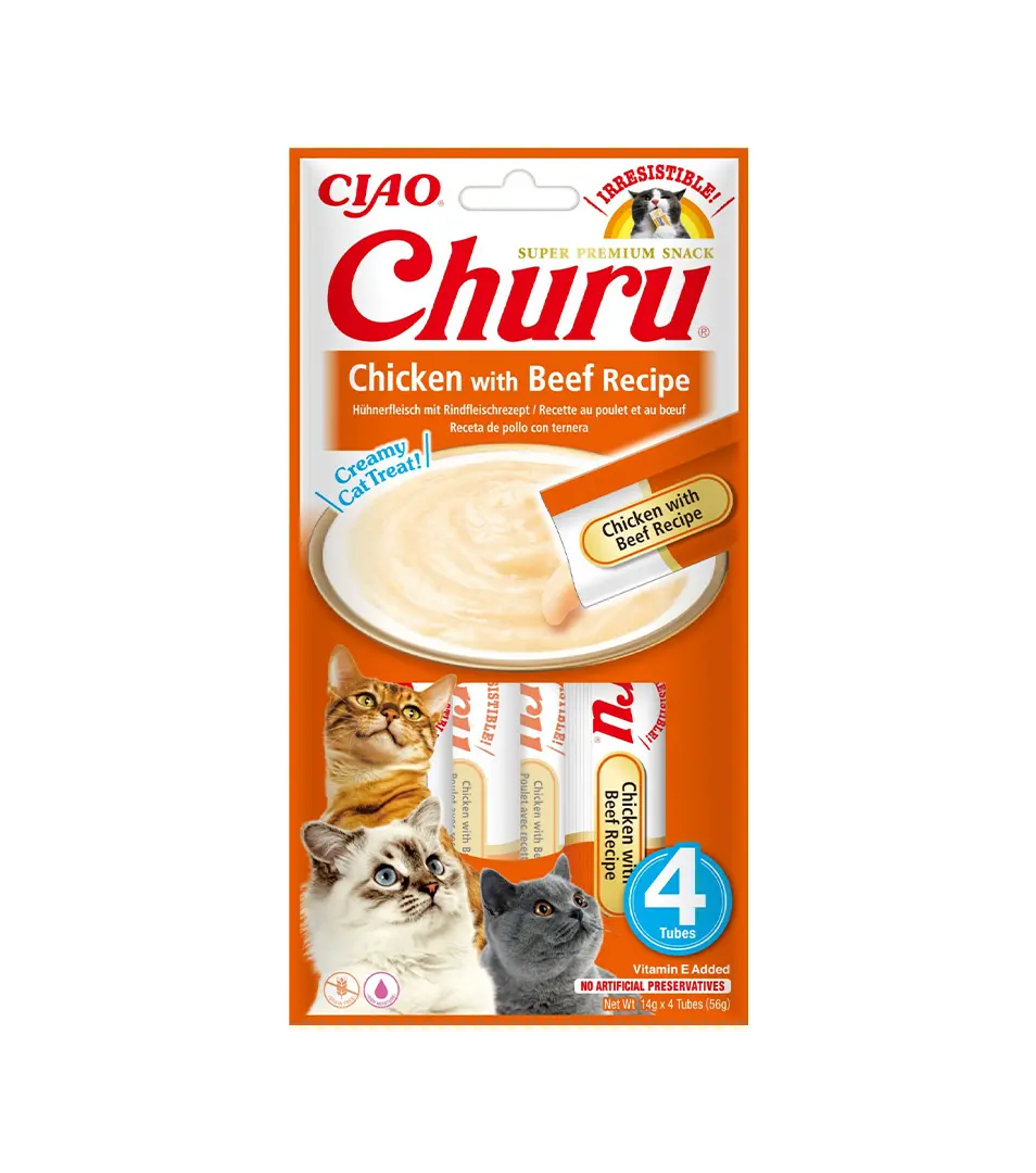 Pamlsok Inaba Churu Pyré cat Kura s hovädzím mäsom 4 tuby 56 gSkladom3,31 €/ BAL2,69 € bez DPH