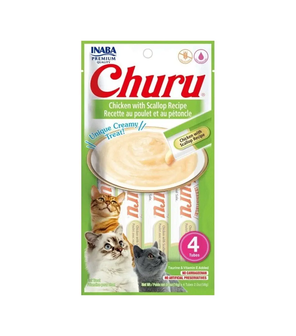 Pamlsok Inaba Churu Pyré cat Kura s lastúrami 4 tuby 56 g