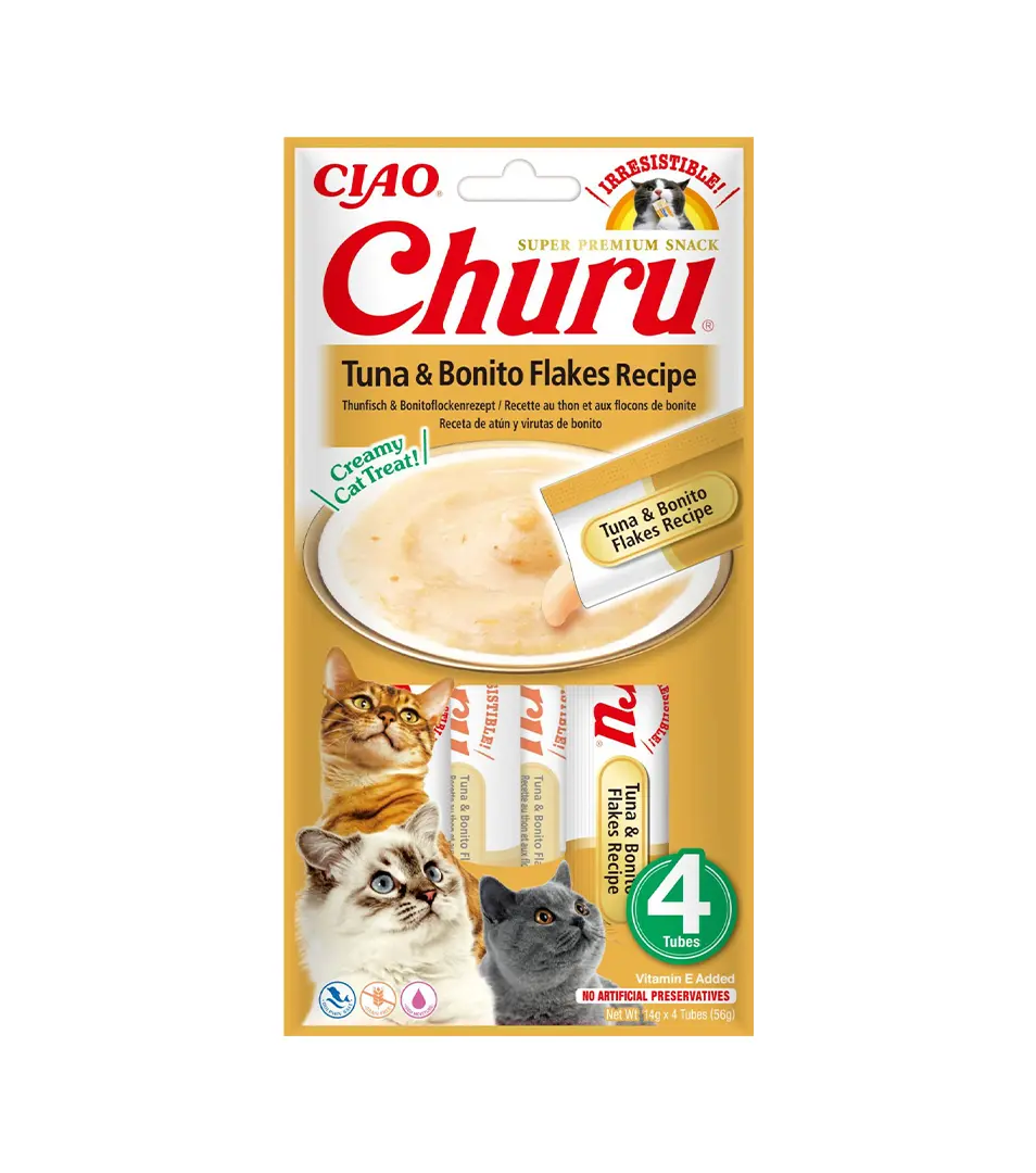 Pamlsok Inaba Churu Pyré cat Tuniak s bonito vločkami 4 tuby 56 g