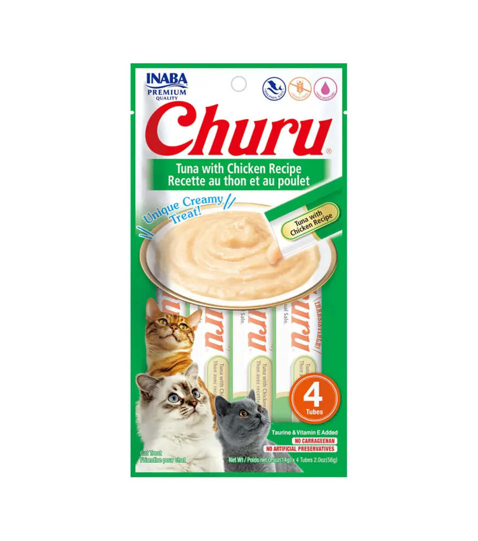 Pamlsok Inaba Churu Pyré cat Tuniak s kuraťom 4 tuby 56 gSkladom3,31 €/ BAL2,69 € bez DPH