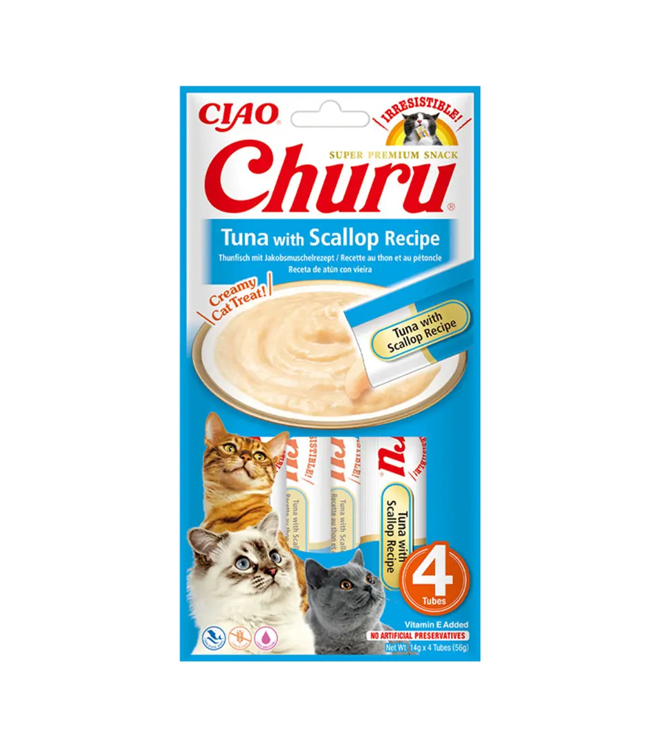 Pamlsok Inaba Churu Pyré cat Tuniak s lastúrami 4 tuby 56 g