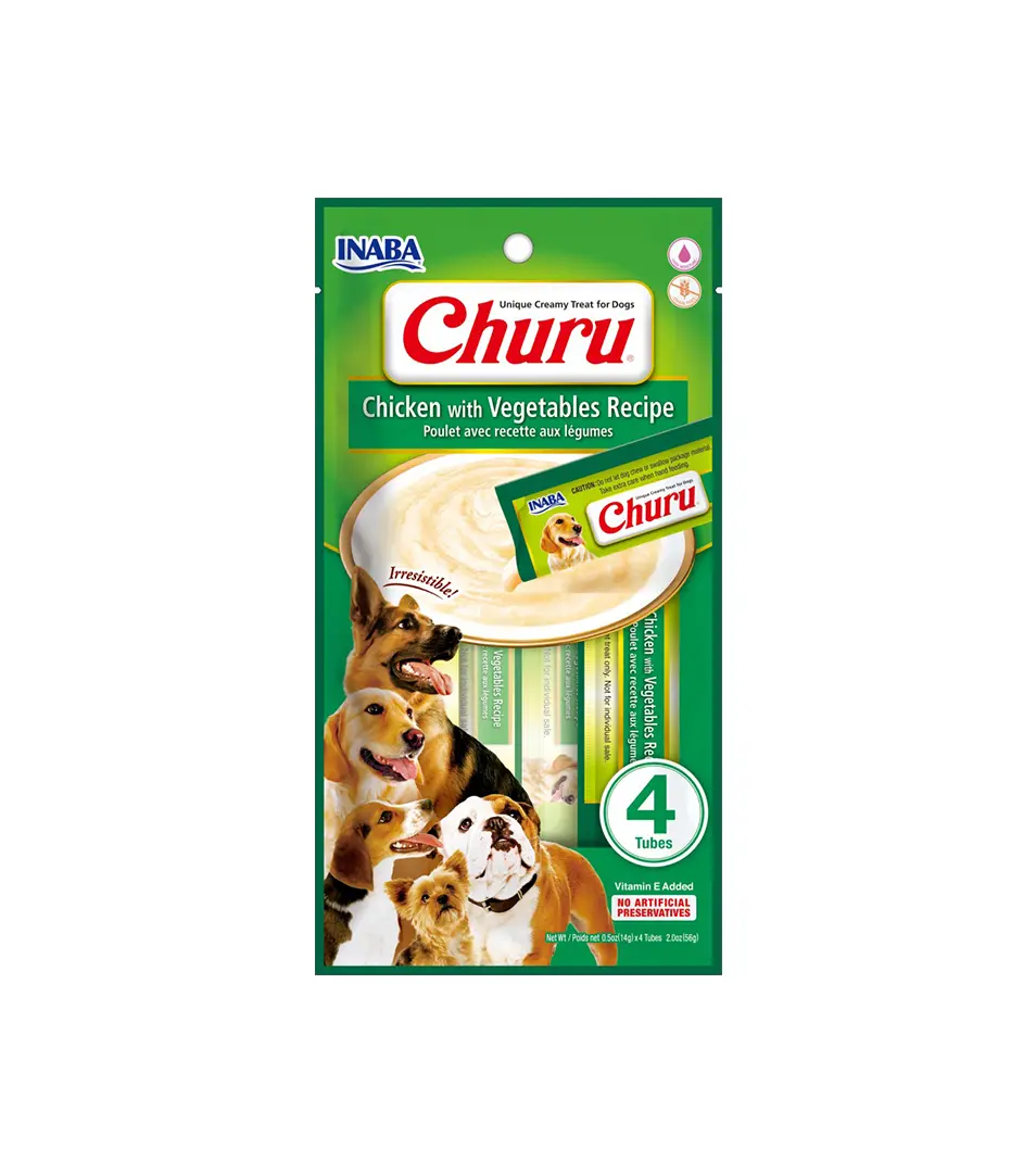 Pamlsok Inaba Churu Pyré dog Kura so zeleninou 4 tuby 56 gSkladom3,31 €/ BAL2,69 € bez DPH
