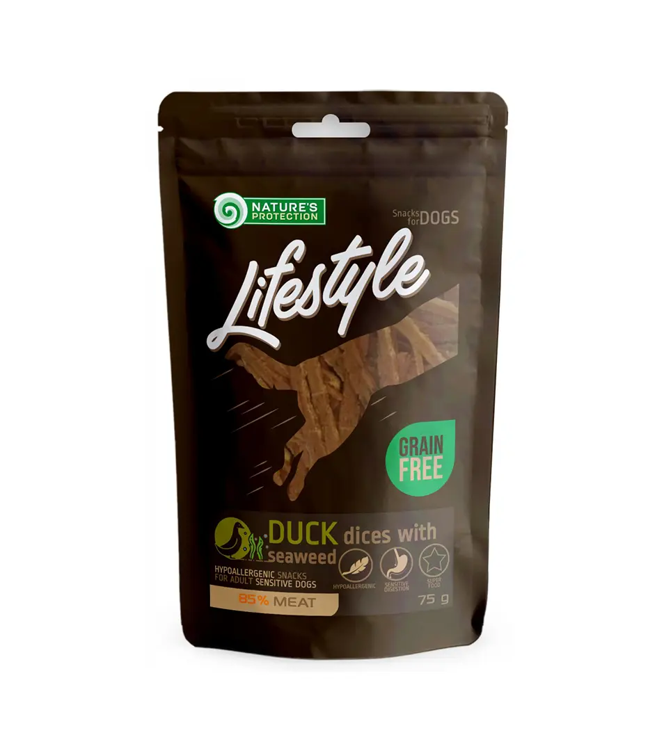 Pamlsok Natures P Lifestyle dog soft duck dices with seaweed 75 gNie je skladom2,29 €/ KS1,86 € bez DPH
