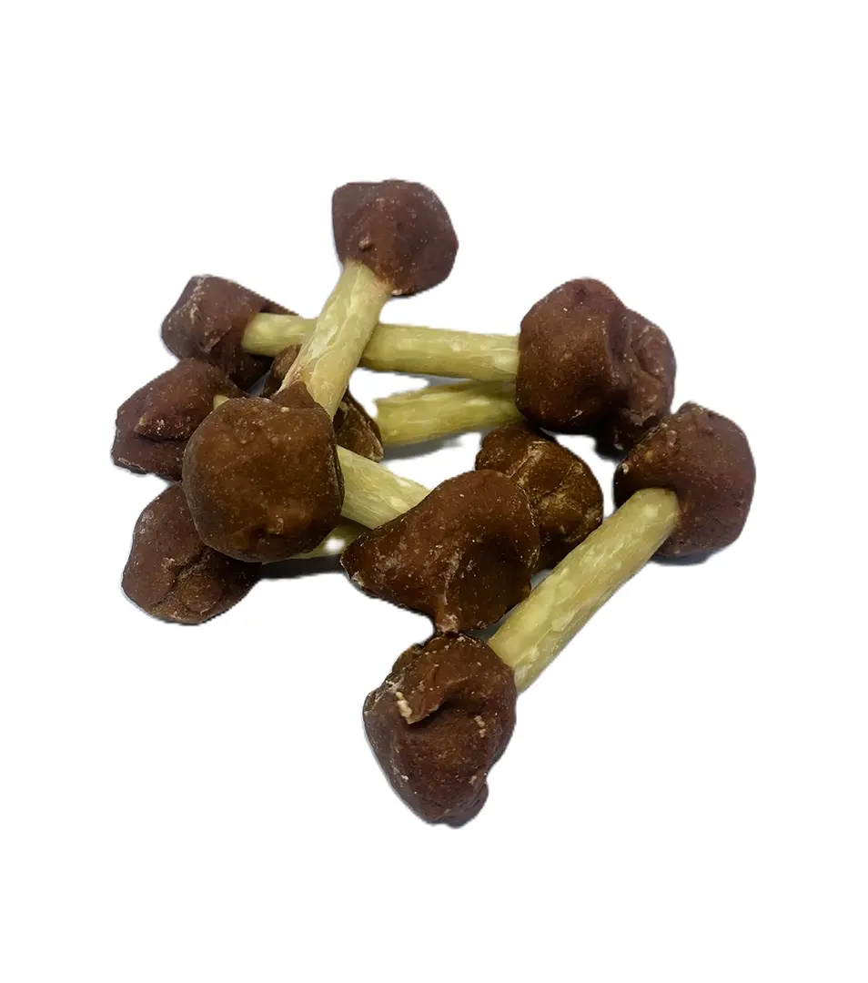 Maškrta z drvenej byvolej kože a kačacieho mäsa v tvare činky o veľkosti cca 8cm.
