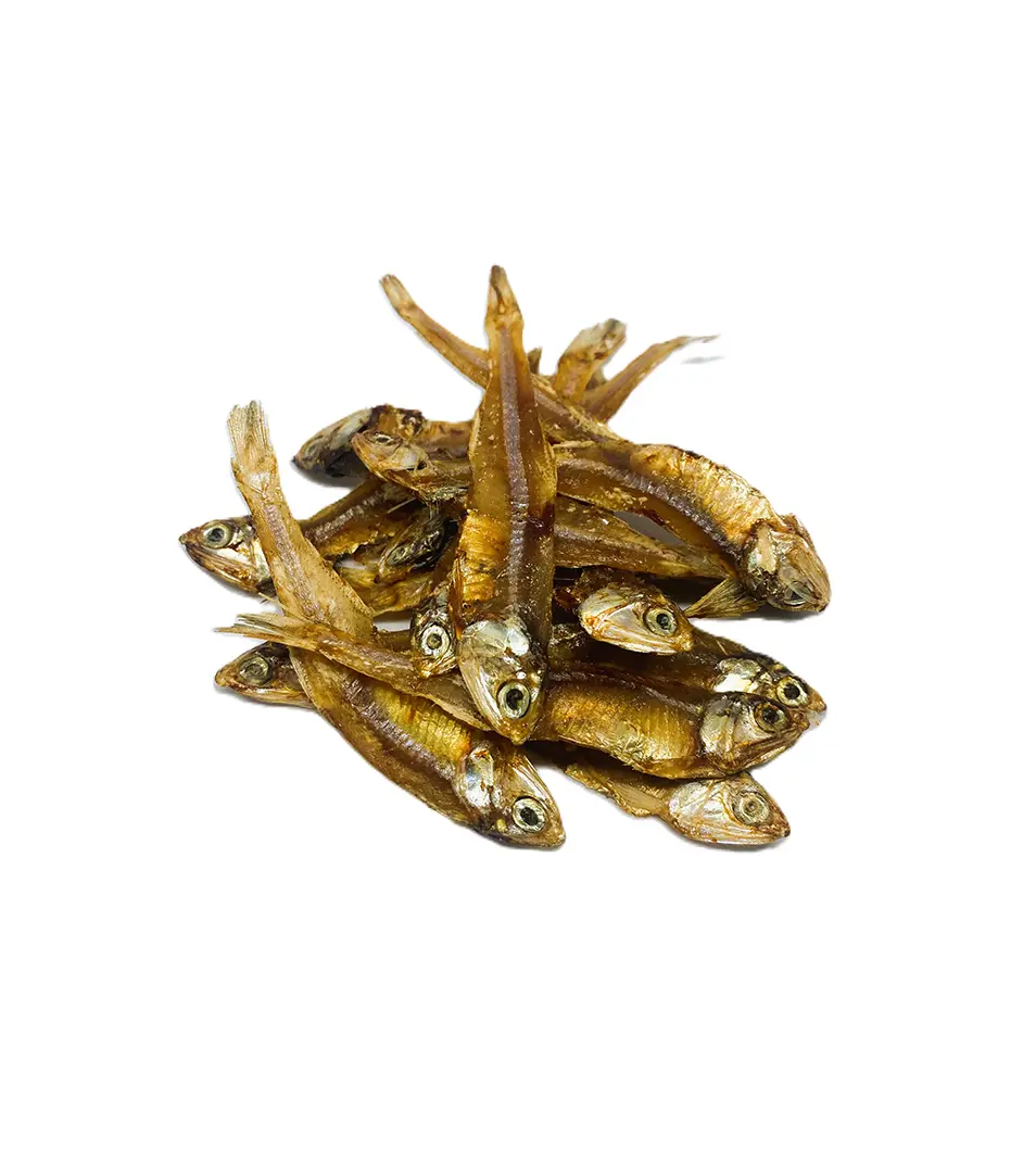 Celé malé sušené rybičky. Maškrta pre psíkov aj mačky.