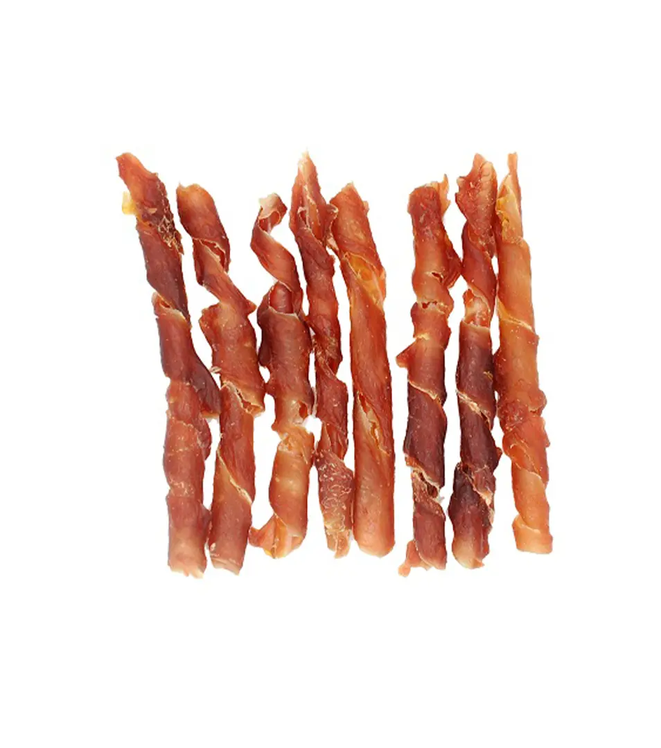 Sušené kačacie tenké plátky zatočené do špirálok. Dajú sa lámať.