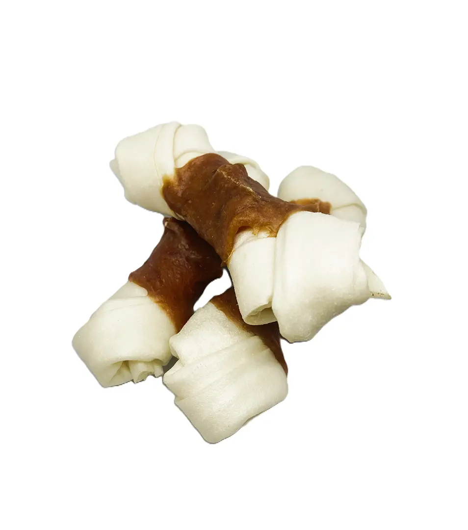 Uzlík z byvolej kože obalený kačacím mäsom. Veľkosť uzlíka je cca 10-11cm.