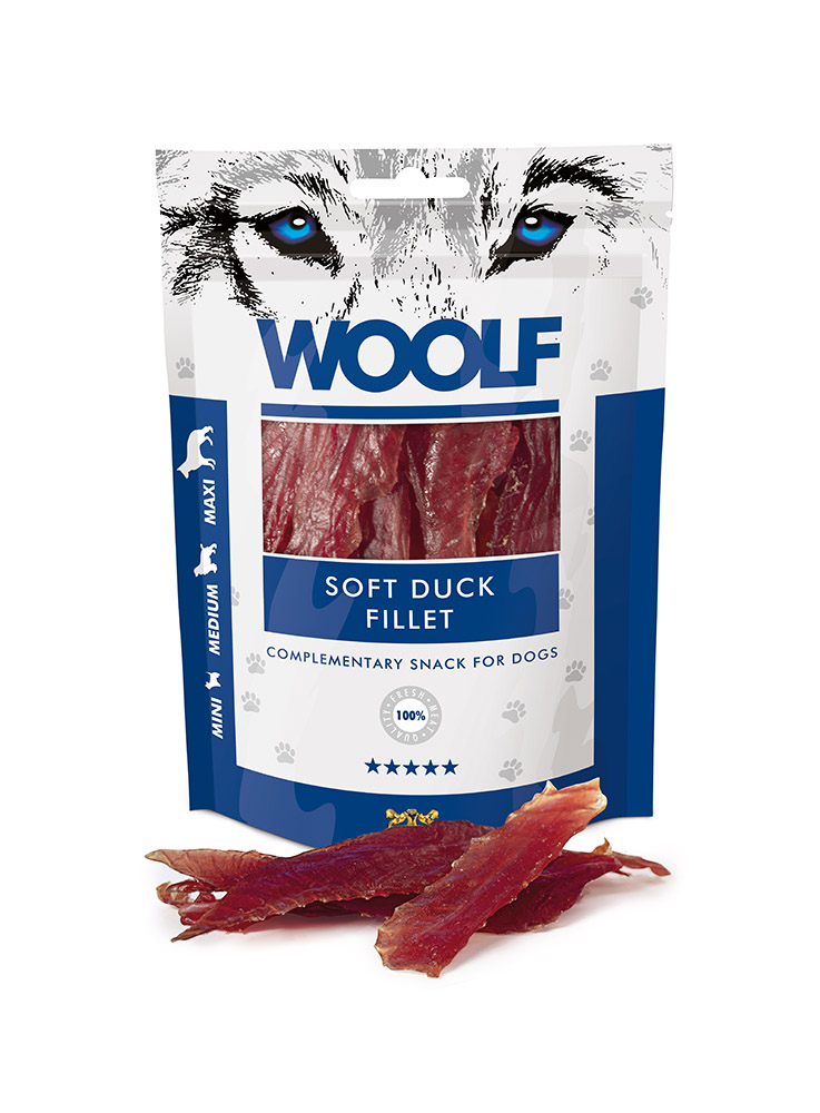 Pamlsok Woolf Dog Duck Jerky Soft Fillet 100 gSkladom4,05 €/ KS3,29 € bez DPH