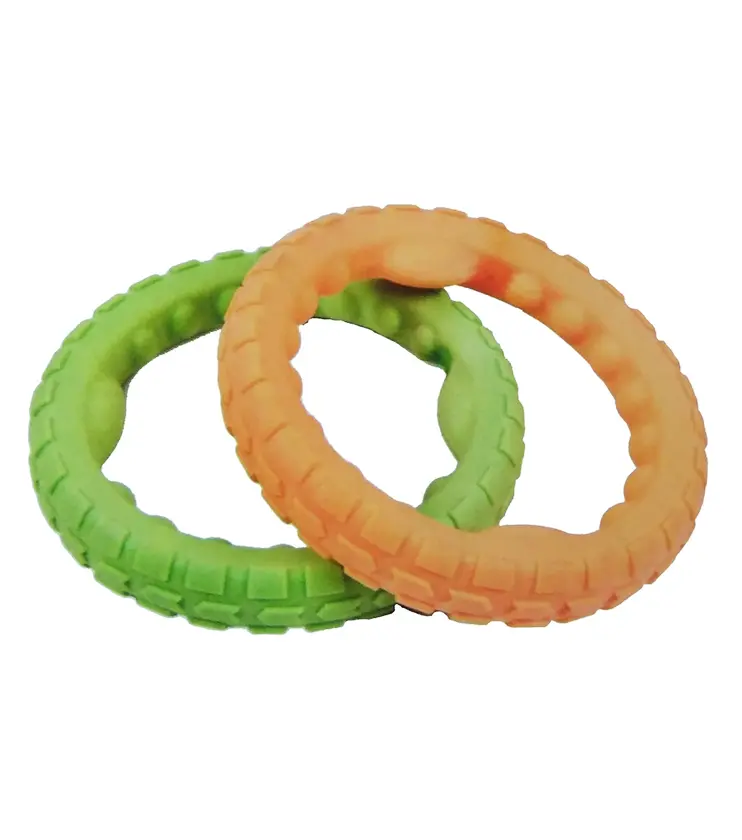 Kruh z mäkkej a ľahkej EVA peny o priemere 13 cm. Je vhodná pre vodné hrátky a aport. Nie je vhodná pre psov, ktorí majú sklony k nadmernému ničeniu hračiek. V ponuke je zelená a oranžová varianta.
