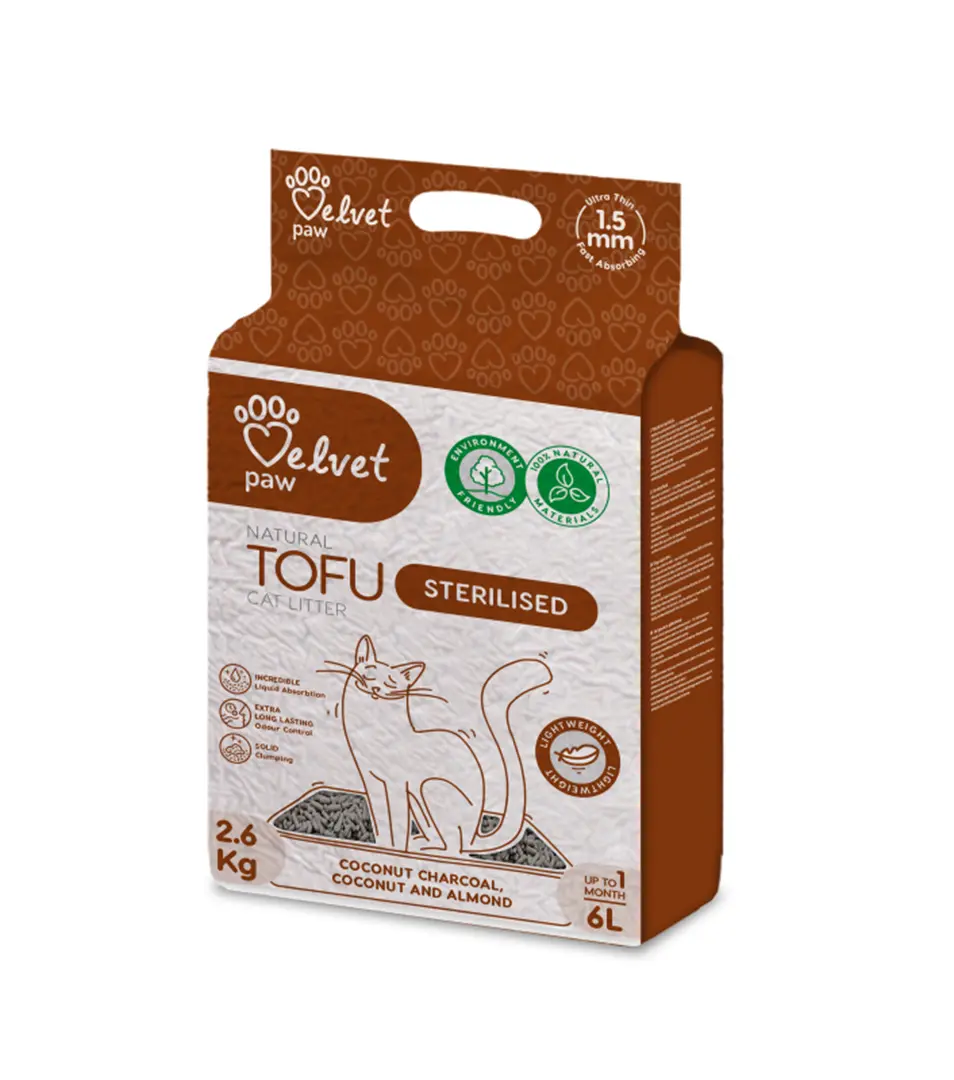 Podstielka pre steriliz.mačky Velvet Paw Tofu s kokos.uhlím, kokos. a mandľovou esenciou 6 l