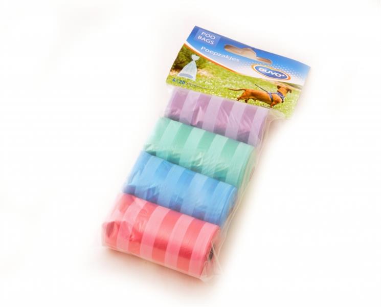 Sáčky DUVO+ na zber psích výkalov farebné s prúžkami 4 x 20 ks