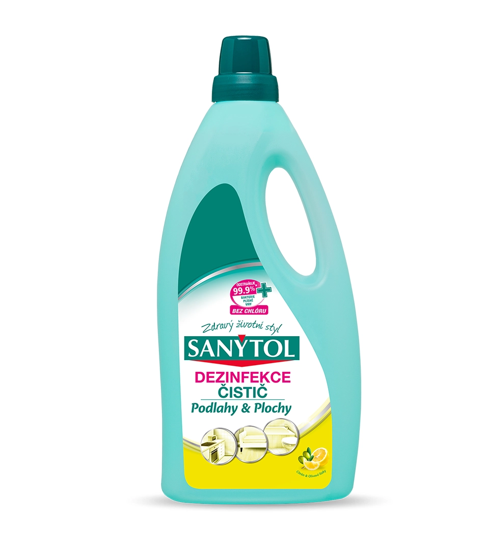 SANYTOL Dezinfekčný čistič na podlahy a plochy – Citrón a olivové lístky 1 lSkladom6,10 €/ ks4,96 € bez DPH