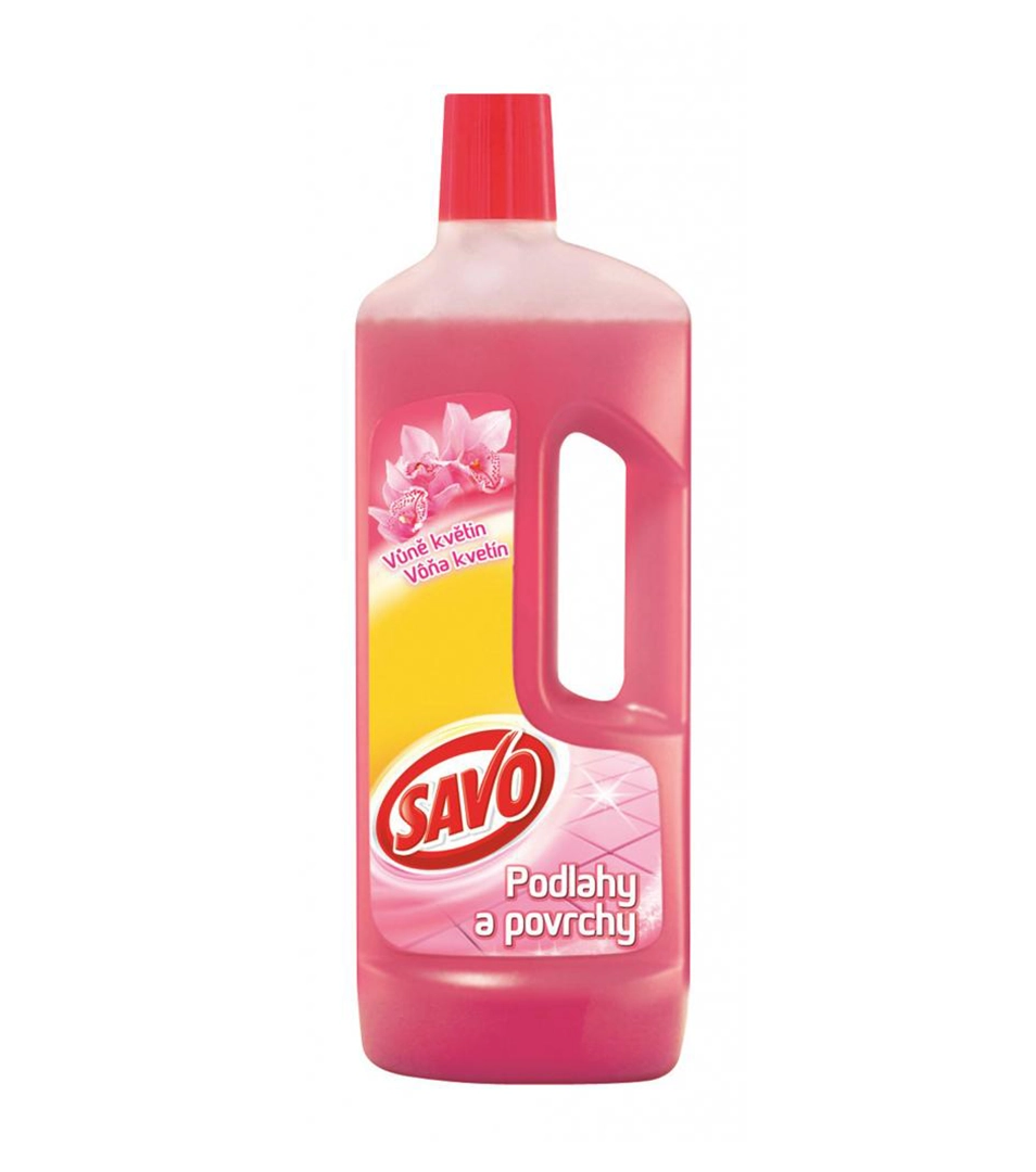 Univerzálny čistiaci prípravok Savo na podlahy a iné umývateľné povrchy. Účinne odstraňuje bežné nečistoty. Rýchlo schne a zanecháva povrch lesklý a bez šmúh. S vôňou kvetín.
