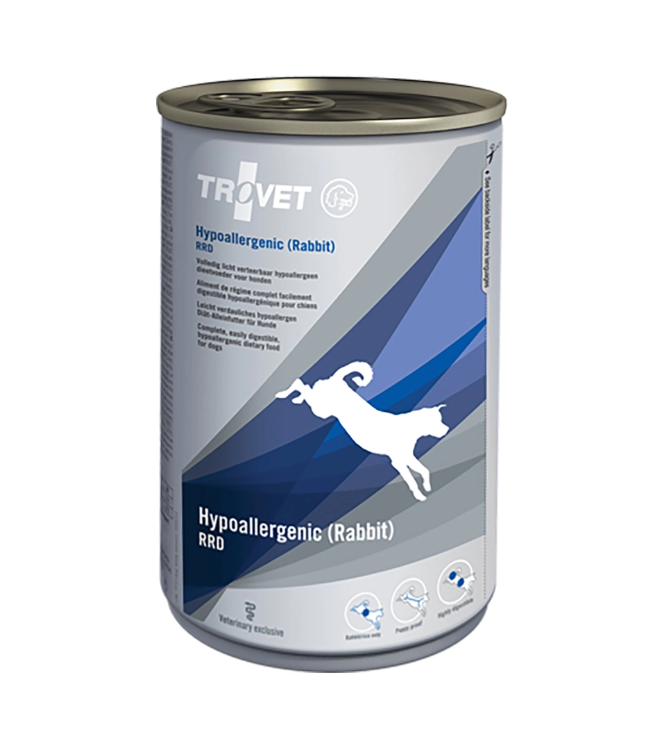 Ako vybraný zdroj sacharidov slúži ľahko stráviteľná ryža. Králičie mäso poskytuje vysokokvalitné bielkoviny s vysokou biologickou hodnotou, ktoré poskytujú esenciálne amínokyseliny. Trovet Hypoallergenic s králičím RRD má nízky alergénny potenciál a je dobre znášané mnohými psami.