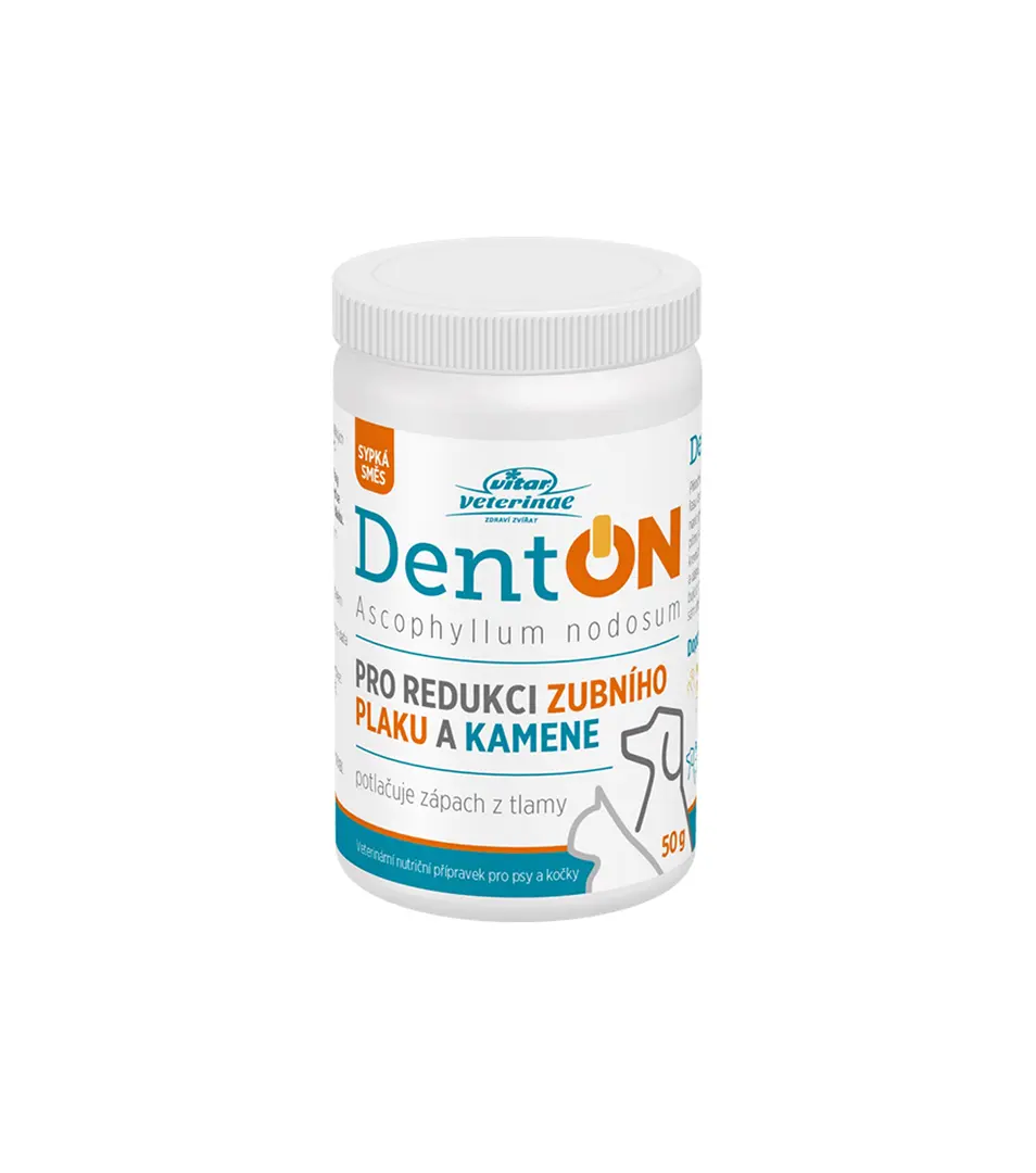 Prírodný prípravok Vitar Veterinae DentON je určený pre psy a mačky. Obsahuje morskú riasu Ascophyllum nodosum, ktorá pôsobí priamo v slinách zvieraťa je skvelou voľbou pre zachytávanie nežiadúcich baktérií, spôsobujúcich zubný povlak.