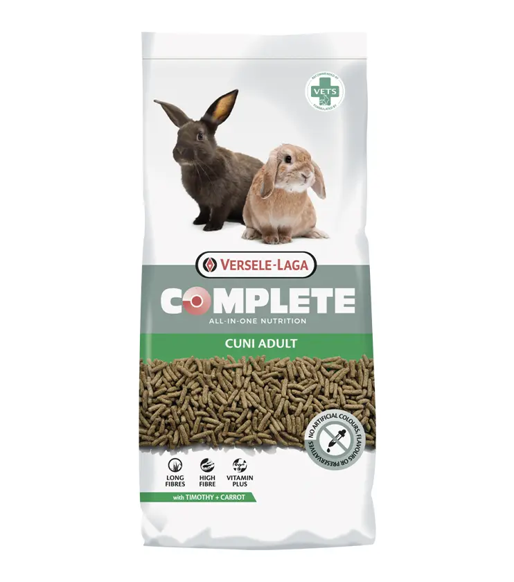Versele-Laga Complete Cuni Adult je výživa bez starostí. Výnimočne chutná peleta –všetko v jednom- predchádza prieberčivému príjmu potravy. Takým spôsobom prijme váš králik všetky potrebné živiny a udrží si dobré zdravie.
