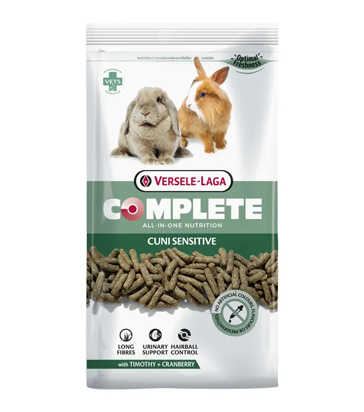 Versele-Laga Complete Cuni Sensitive je výživa bez starostí. Výnimočne chutná peleta –všetko v jednom- predchádza prieberčivému príjmu potravy. Takým spôsobom prijme váš králik všetky potrebné živiny a udrží si dobré zdravie.