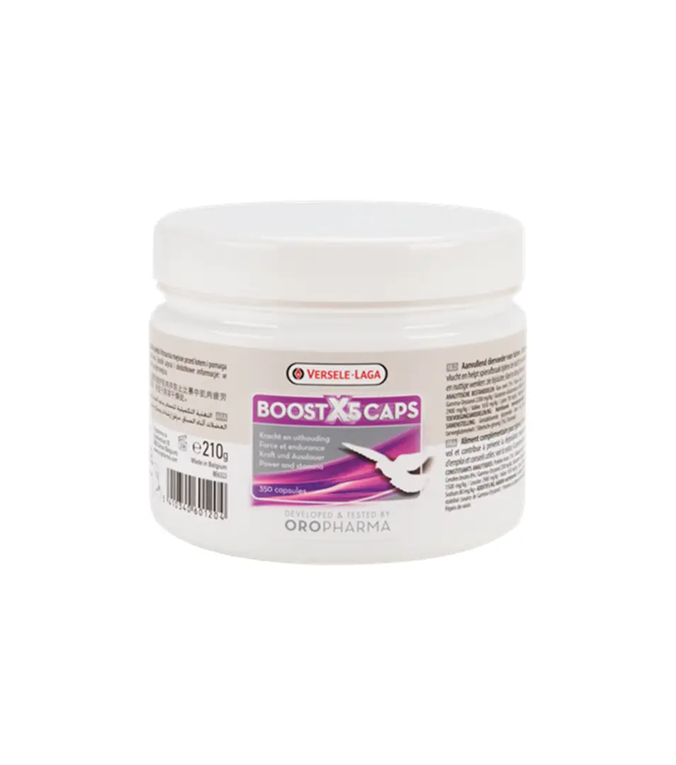 Kŕmna zmes pre holuby. Energetická zmes podporujúca svaly - v kapsulách. Jedinečná zmes prírodných produktov vrátane aminokyselín, výťažkov z hroznových semien, ženšenu a gama-oryzanolu pre maximálnu podporu svalov a produkciu energie počas letov. Praktické kapsuly na individuálne podanie. Funkcia budovania svalov. Zlepšuje vytrvalosť a zabraňuje odbúravaniu svalovej hmoty počas pretekov. BCAA (aminokyseliny) zaisťujú menšiu únavu svalov.