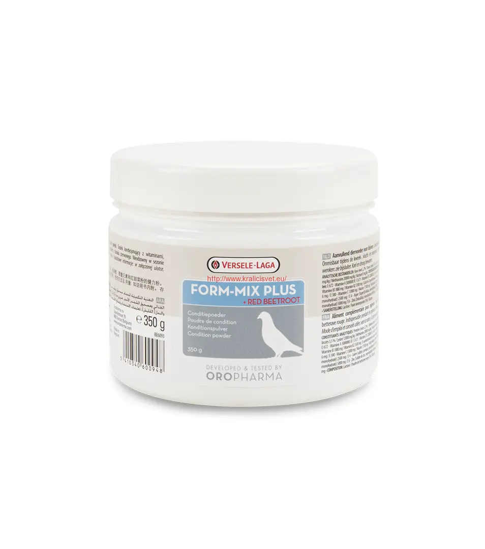 Kŕmna zmes pre holuby. Prášok podporujúci kondíciu.Kombinácia vitamínov, aminokyselín, stopových prvkov a prášku z červenej repy. Zabezpečuje optimálne zdravie, čím pozitívne pôsobí na výkonnosť. Pomáha posilňovať prirodzenú imunitu. Zlepšuje stav holubov prirodzeným spôsobom. Červená repa zabezpečuje zlepšenie vytrvalostnej výkonnosti.