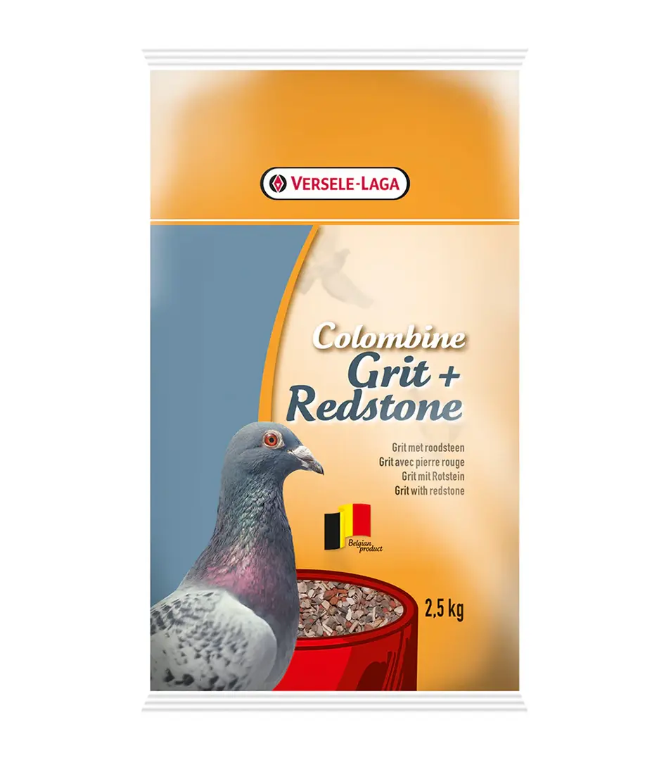 Kŕmna zmes. Červený grit zaisťuje optimálne trávenie holubov. Obsahuje tiež aníz, uhlie a vápenec. Špecifické vlastnosti: obsahuje grit na trávenie, drvený silex, dva druhy lastúr, červenú drť a živočíšne uhlie. Podporuje optimálne trávenie a vytvára pevné trusy.