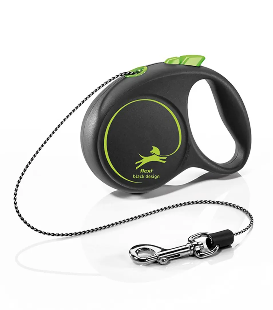 Flexi BLACK DESIGN sa dodáva v troch výrazných farbách, ktoré tvoria výrazný kontrast s čiernym puzdrom, ako aj v decentnom čisto čiernom vodítku s klasickým strieborným logom.